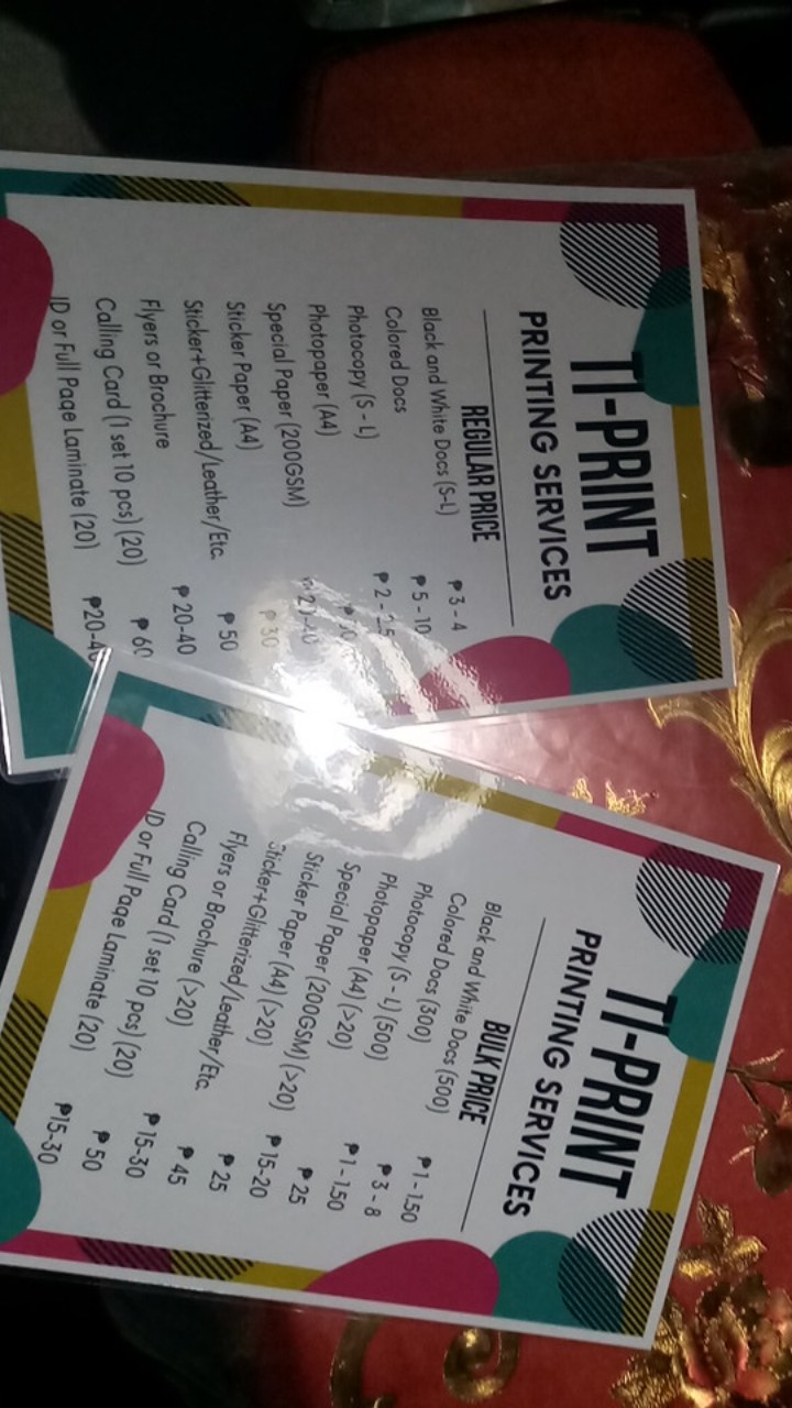 Document printing price id lamination price list philippines.